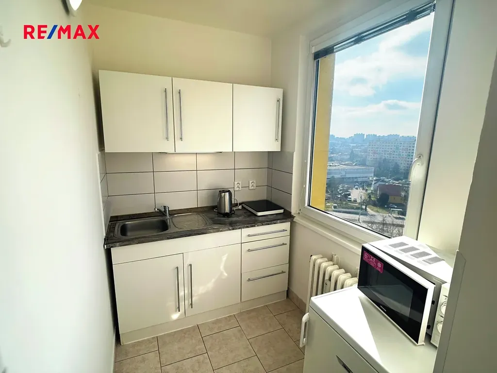 Malý byt 1+kk k pronájmu na Chodově, situovaný v 10. patře udržovaného domu s výtahem. Byt je plně zařízený a nabízí prakticky řešený obytný prostor s kuchyňským koutem, koupelnu se sprchovým koutem a dostatek úložných možností. Velkou předností je krásný otevřený výhled do okolí, který dodává bytu příjemnou atmosféru a dostatek světla po celý den.