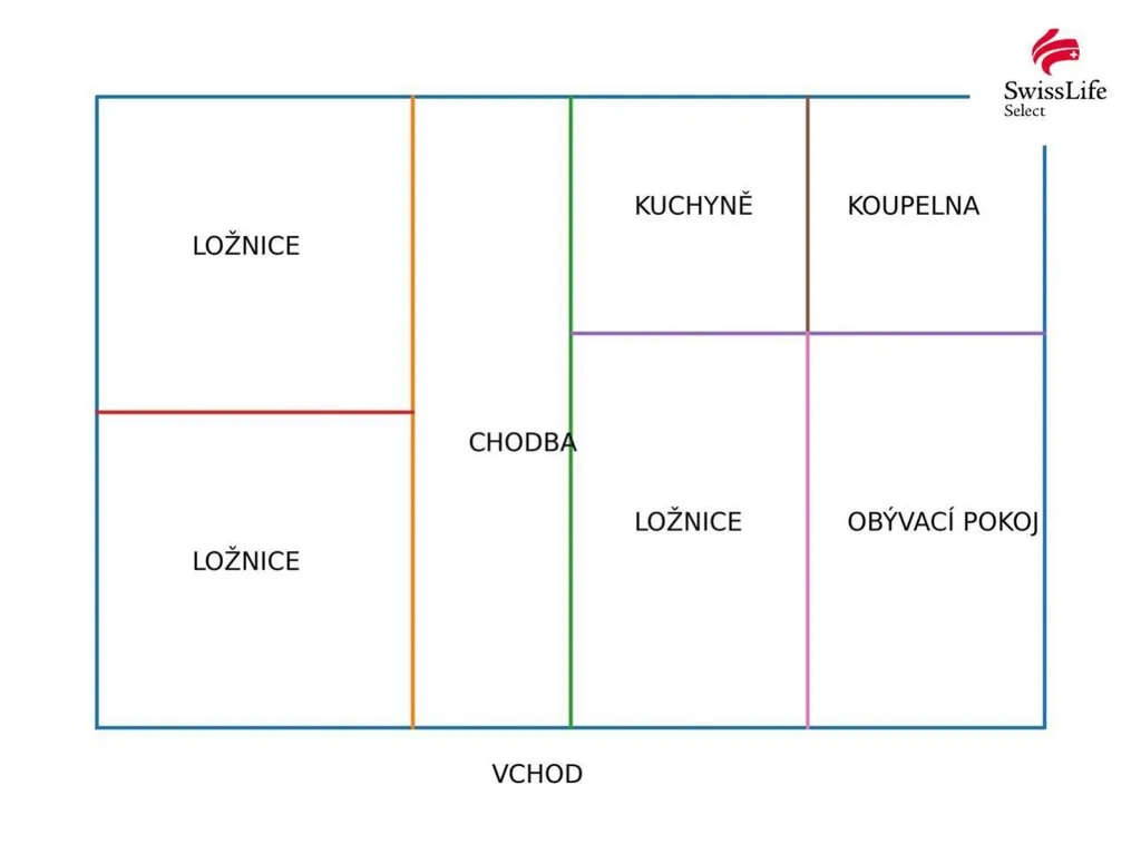 Dispozičně je dům velmi prakticky řešen. Z prostorné chodby je vstup do dvou ložnic, dále do kuchyně s kachlovými kamny, z níž se plynule pokračuje do obývacího pokoje, další ložnice a koupelny s toaletou a sprchovým koutem.