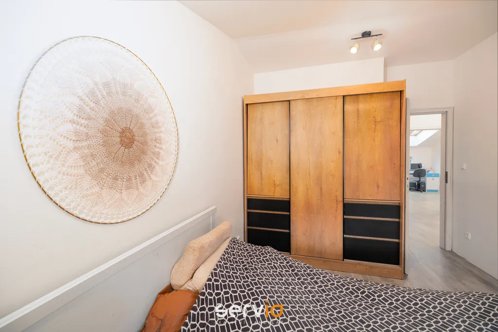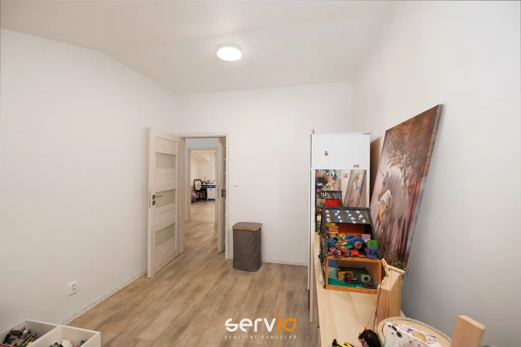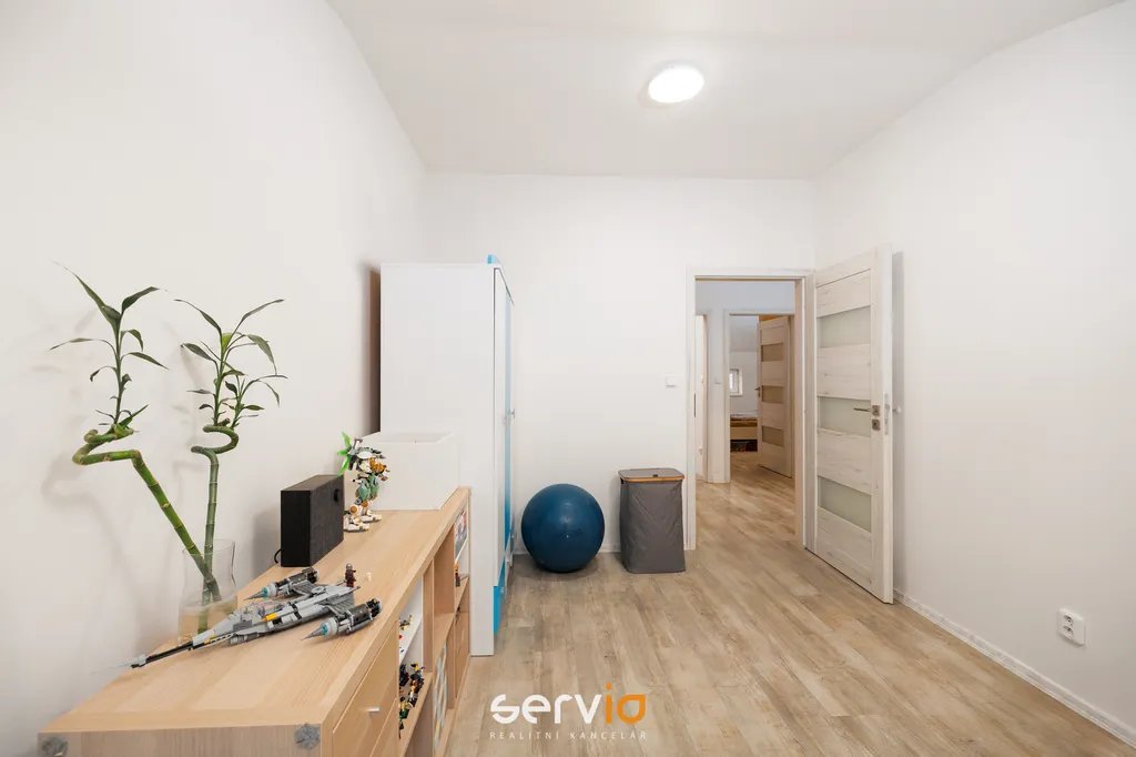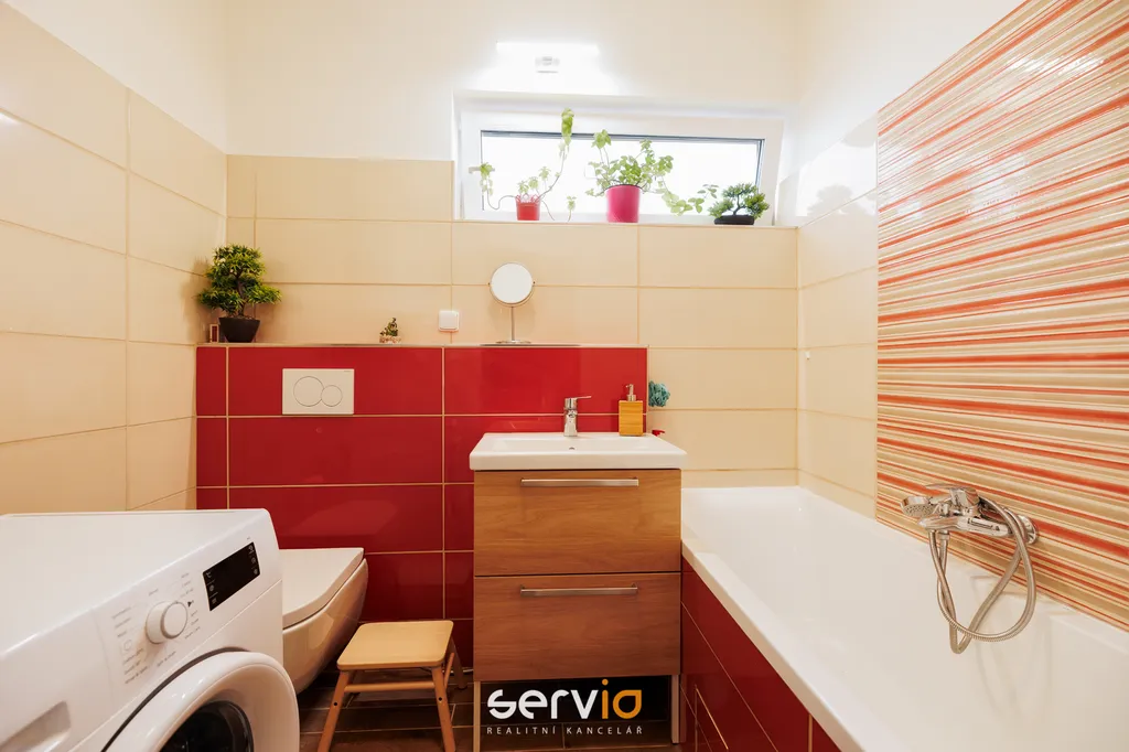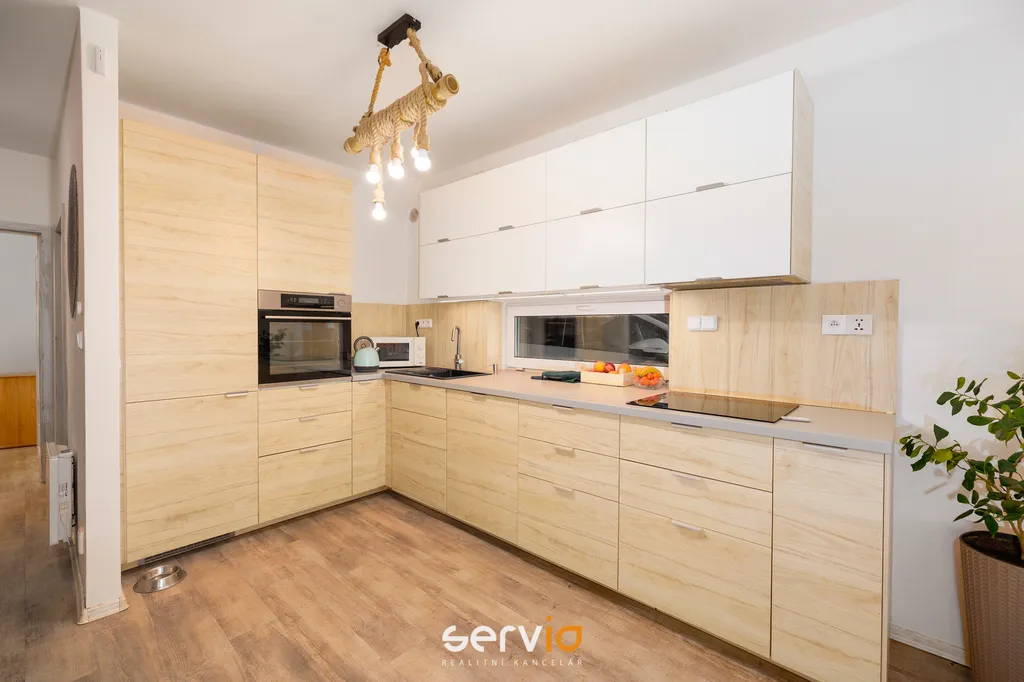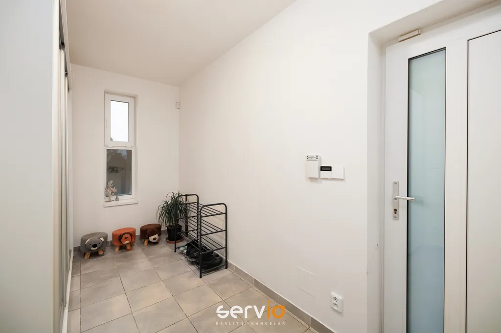Jedná se o patrový dům o 2.NP v blokové zástavbě rodinných domů mimo hlavní ulici. V přízemí se nachází obývací pokoj s kuchyňským koutem, vstupem na zahradu s terasou, pracovna a WC. V patře zbývající 4 pokoje a koupelna s vanou a WC. Možnost parkovaní na vlastním pozemku až pro 3 auta, z toho 1 kryté za uzamykatelnou bránou.