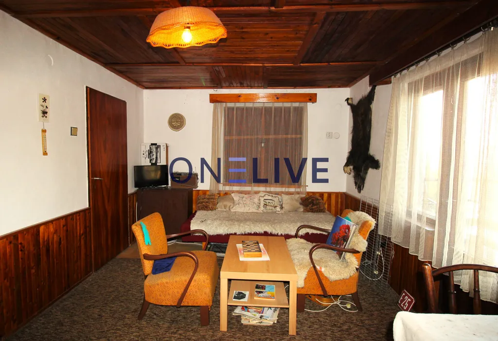 Vybavení a design: Uvnitř najdete prostorný obývací pokoj s krbem, funkčně vybavenou kuchyň, útulnou ložnici a originální detaily, které dodávají celému domu nezaměnitelný charakter.