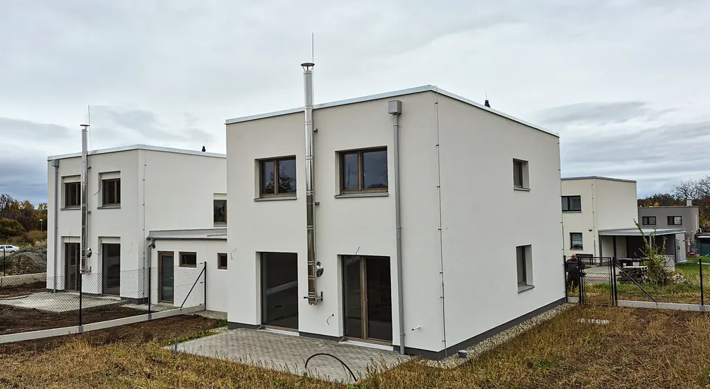 ** Rozsah dodávky je možné upravit na variantu provedení "rozšířená hrubá stavba" = dům z exteriéru zcela dokončen a zbývá dokončit instalace včetně technického vybavení, povrchy, podlahy a koupelny v interiéru. Cena této varianty včetně pozemku je 8 298 000 Kč.