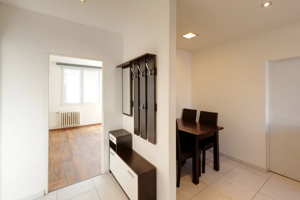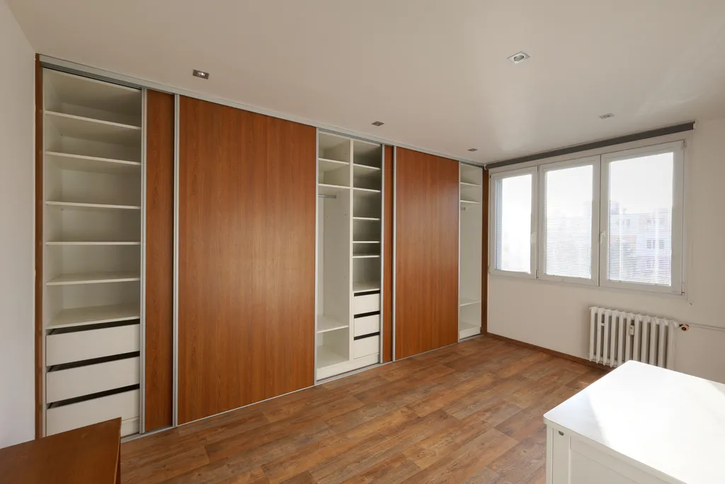 Ve dvou pokojích jsou instalovány prostorné vestavěné skříně s kombinací závěsného i policového úložného prostoru. Byt má snížené stropy s bodovým osvětlením. Okna jsou opatřena žaluziemi a roletami. V předsíni je umístěna předsíňová stěna se zrcadlem.