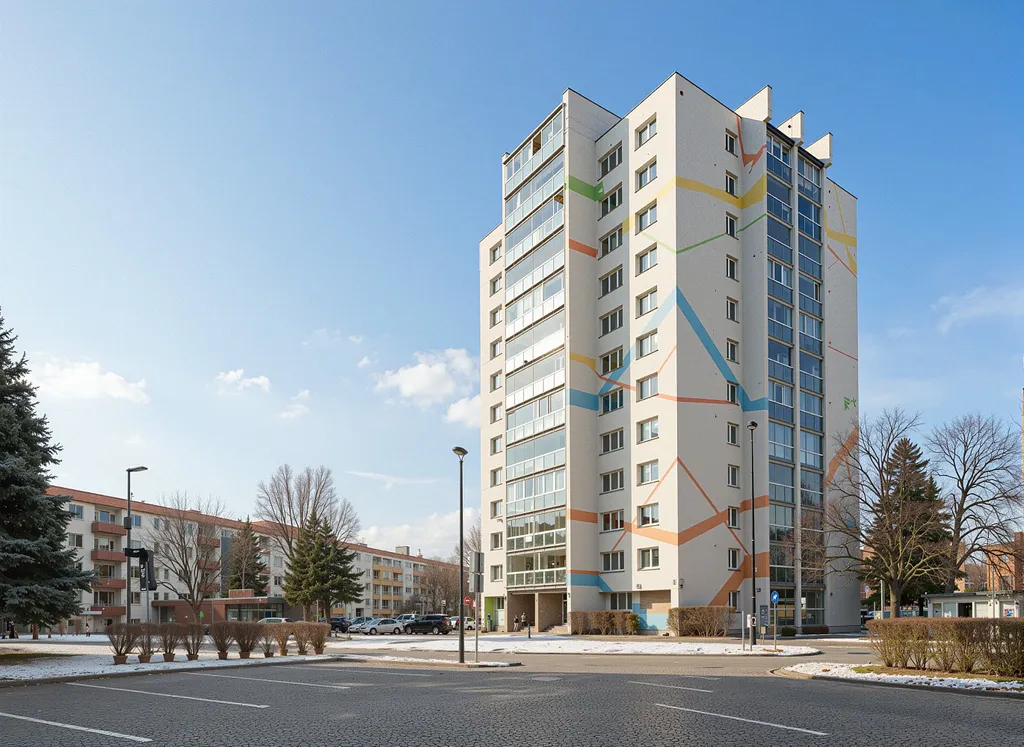 Byt s užitnou plochou 70 m² je v půdovním, udržovaném stravu. Situován v osmém nadzemním podlaží dvanáctipodlažního revitalizovaného domu s dvěma výtahy a udržovanými společnými prostory. Je orientován na dvě světové strany, což zajišťuje dostatek denního světla i příjemnou atmosféru během celého dne.