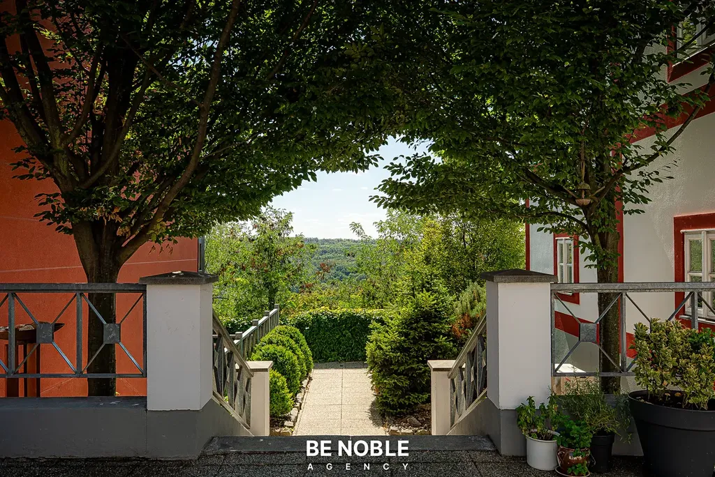 Z oranžerie se vychází na terasu o velikosti 25 m², ideální pro snídaně na slunci, večerní sklenku vína nebo odpočinek s výhledem do zeleně.