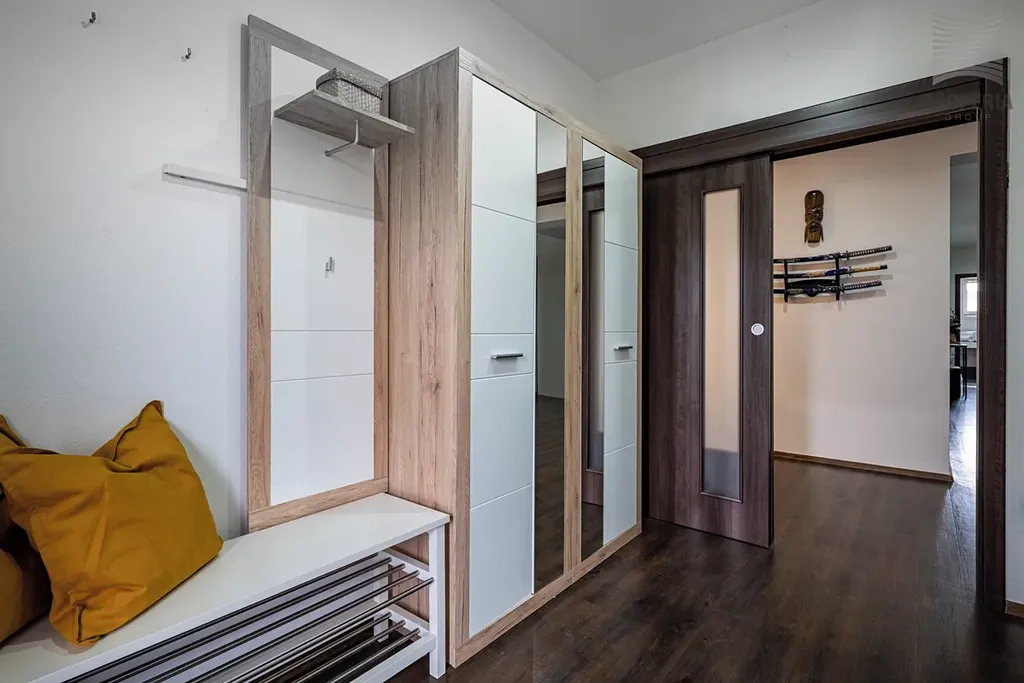 Dispozice je ideální pro rodinu s dětmi, ale také pro kombinaci bydlení a práce z domova.