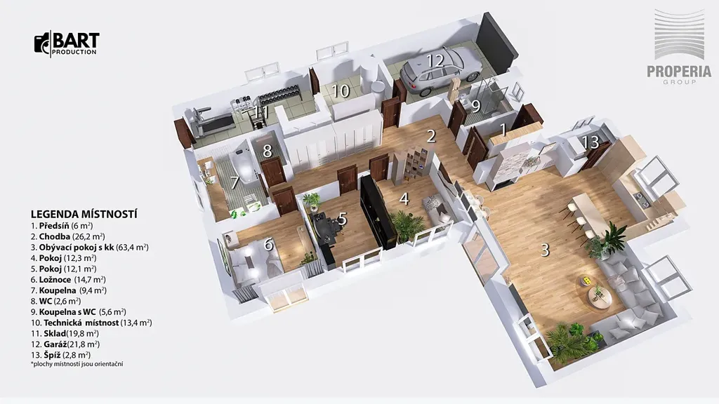 - 2 koupelny (koupelna + samostatné WC / koupelna s WC)