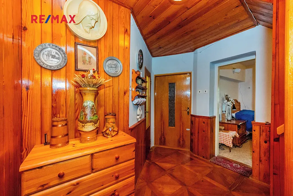 Pro každodenní potřeby je zde blízká Dobříš (pouze 3-5 km), kde najdete náměstí s kavárnami, obchody, supermarkety a další služby pro pohodlný život. O něco dál, v Příbrami (cca 10 km), čeká široká nabídka – od hotelů a spa resortů přes bazény až po kulturní atrakce jako Hornické muzeum, které přibližuje bohatou historii regionu. Tato kombinace přírody a blízkosti městských center dělá z chalupy perfektní volbu pro trvalé bydlení po drobných úpravách nebo jako rekreační útočiště.