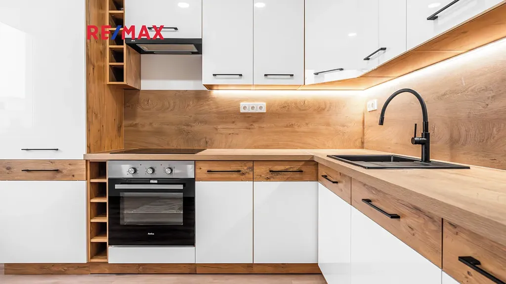 K dispozici je nová kuchyňská linka vybavená spotřebiči: myčkou na nádobí, troubou a lednicí, takže se můžete nastěhovat a fungovat okamžitě. V celém bytě byly položeny nové podlahy, které podtrhují celkově sjednocený vzhled. Koupelna je po rekonstrukci, vkusně zařízená a praktická pro každodenní provoz. Příjemným bonusem je také společná sušárna na patře, která rozšiřuje možnosti zázemí v domě.