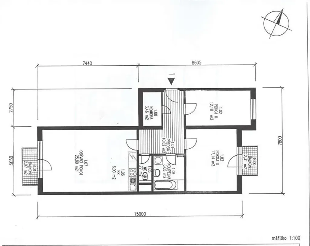 Velmi dobrá dispozice bytu samostatné dva pokoje (17 m2 a 12 m2), prostorný obývací pokoj s kuch. koutem (31 m2) a balkonem. Koupelna s vanou, WC zvlášť. Plovoucí podlahy, rolety a žaluzie v oknech. Kabelová TV v domě Vodafone/02. V domě kolárna.