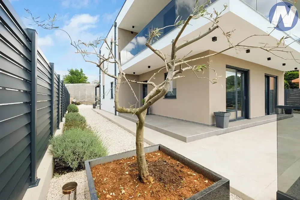 Dům se nachází v lokalitě půvabného městečka Svetvinčenat. Dům je nově postaven v moderním stavebním stylu s velkými prosklenými stěnami, kterými proniká hojné světlo. Skládá se ze vstupní haly, kuchyně, jídelny, toalety, technické místnosti, obývacího pokoje s krbem a přístupu na venkovní terasu, kde je venkovní bazén se sluneční terasou pro relaxaci a zábavu. Vnitřní schodiště zároveň spojuje 1. patro, kde jsou 4 prostorné a světlé ložnice se 4 moderními a plně vybavenými koupelnami.