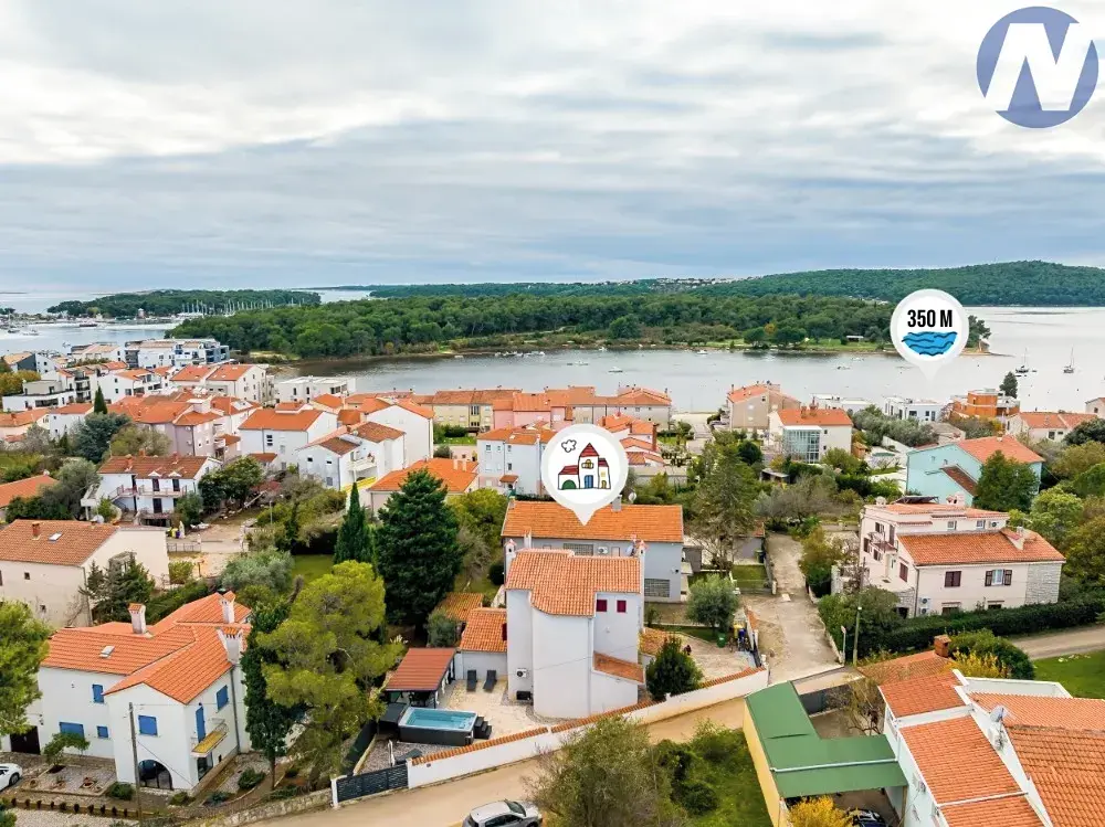 Ve výhradním zastoupení nabízíme třípodlažní dům o rozloze 207 m2, který se nachází v klidné rezidenční čtvrti Medulin, pouhých 350 metrů od moře a 900 metrů od krásné písečné pláže. Nabízí čtyři samostatné apartmány v ideální kombinaci pro bydlení, dovolenou a investice.