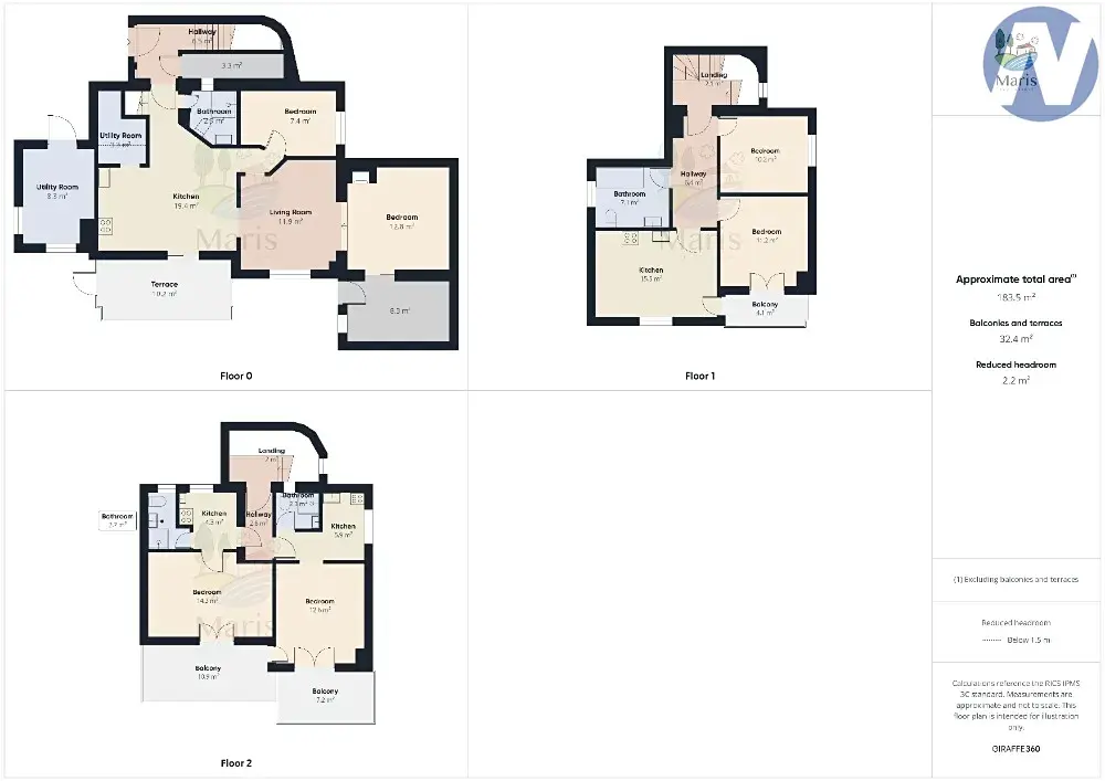 Druhé patro obsahuje dva, každý s jednou ložnicí a vlastním balkonem.