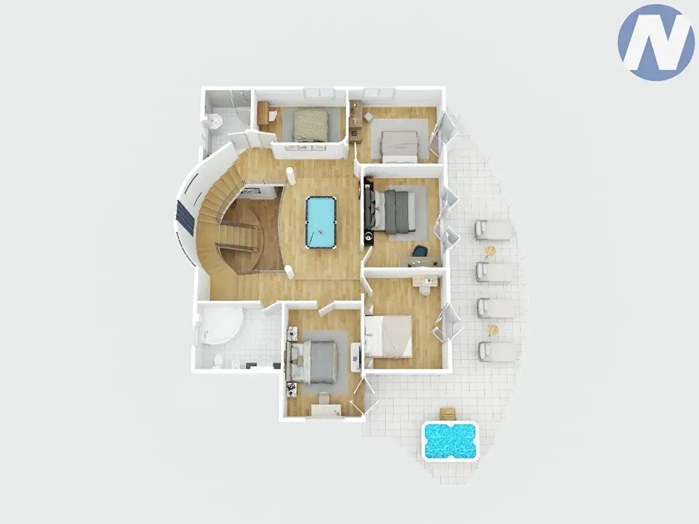 Vila je prodávána kompletně zařízená a je připravená k nastěhování. Se 6 ložnicemi s výhledem na moře, třemi koupelnami, prostorným obývacím pokojem, moderní kuchyní, jídelnou a další pracovnou (kterou můžete přestavět na saunu nebo kancelář) nabízí tato nemovitost luxus, komfort a flexibilitu. Vše je vyrobeno z nejkvalitnějších materiálů, se špičkovým designem a detaily, které vyzařují eleganci.