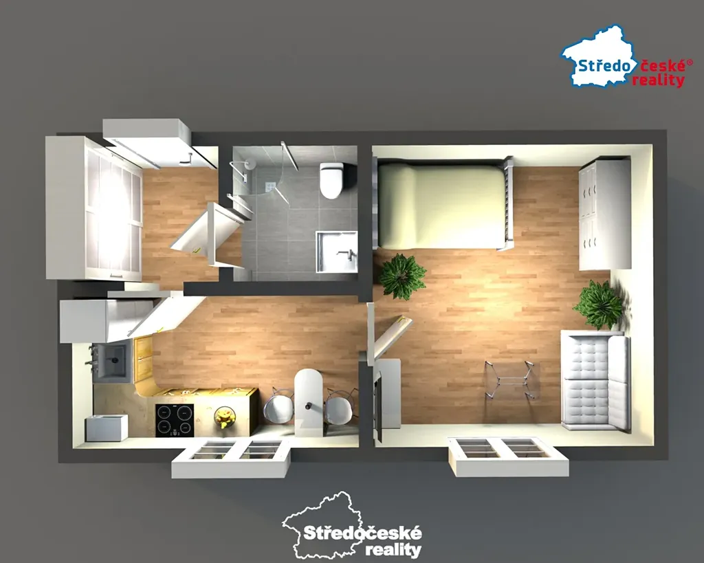 - pět bytových jednotek 1+1, přičemž některé lze využít jako 2+kk (od velikosti 37,8 m2 do 56,2 m2)