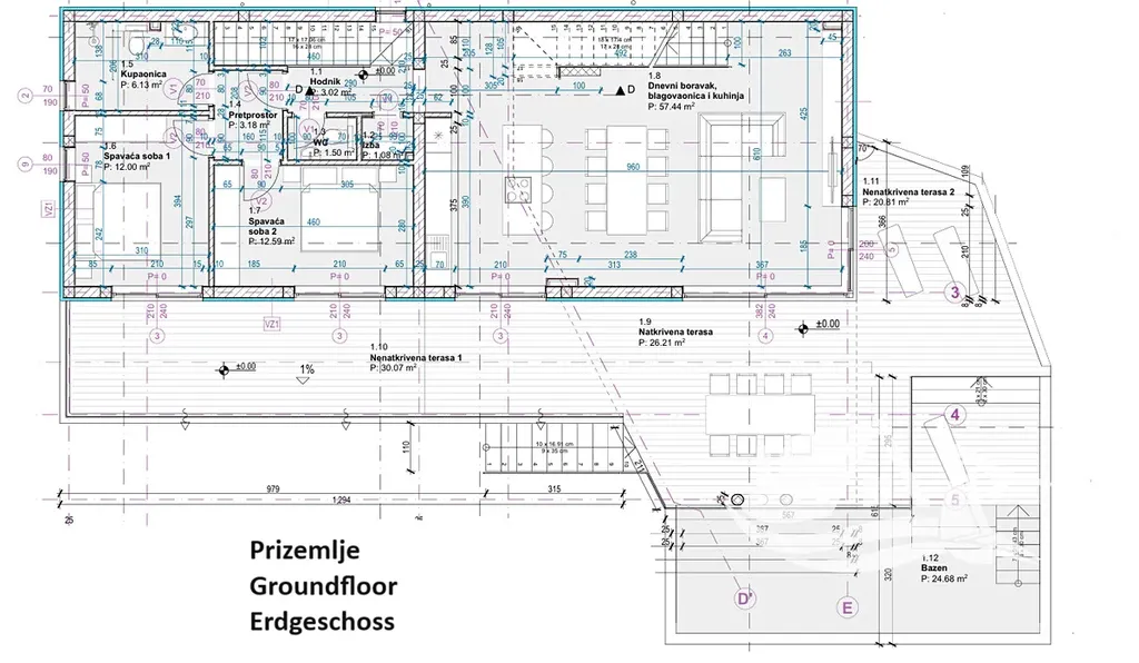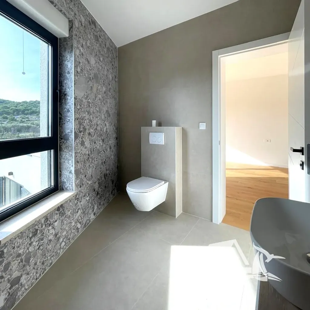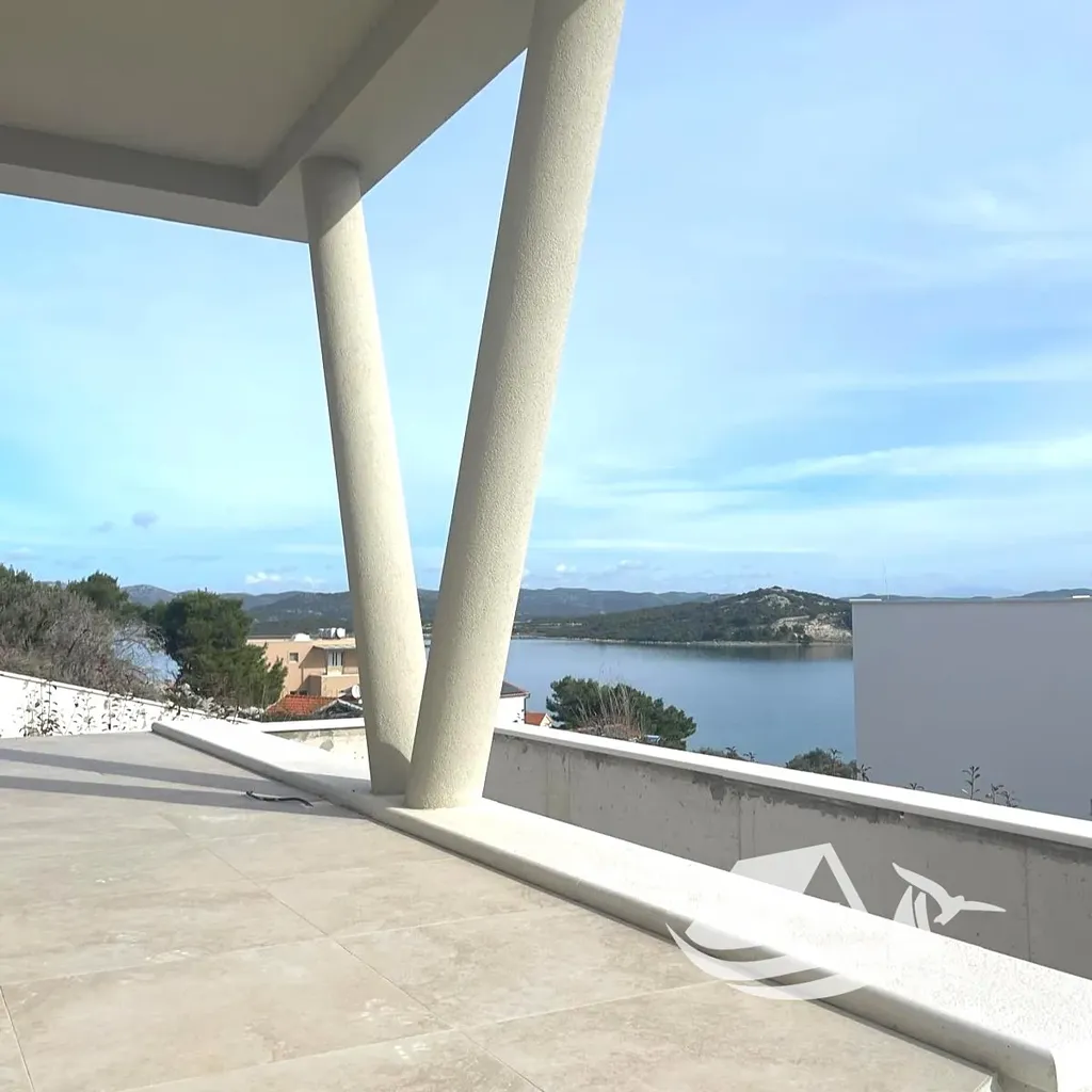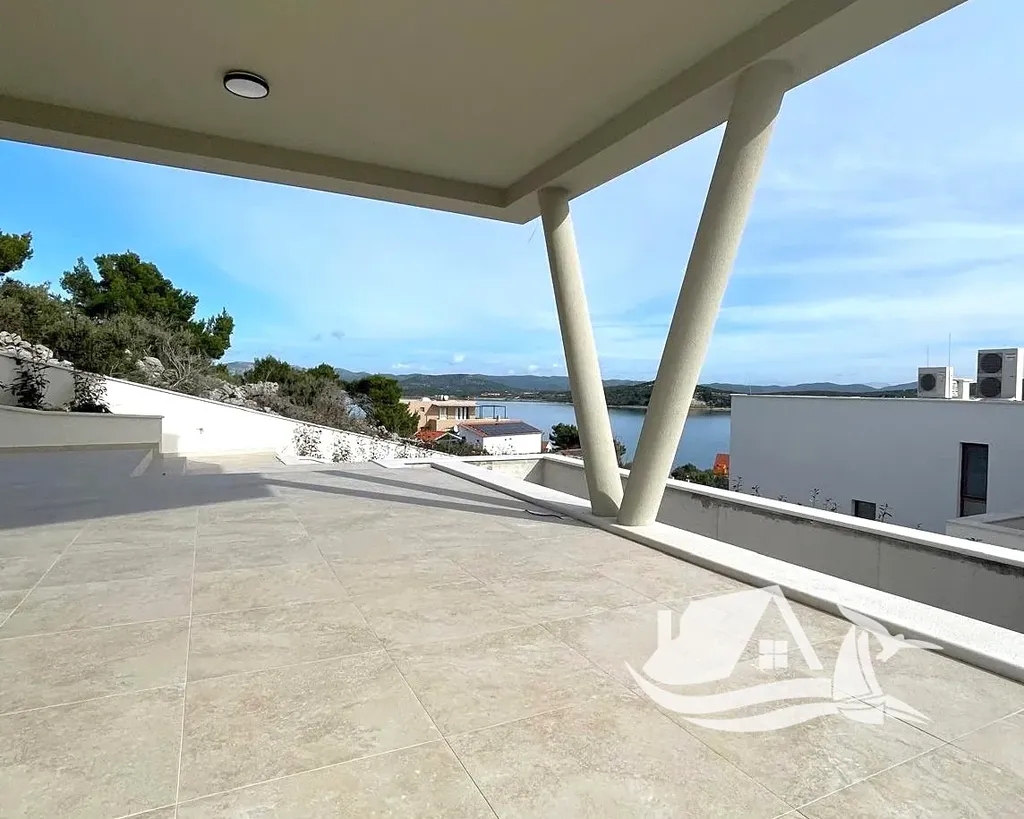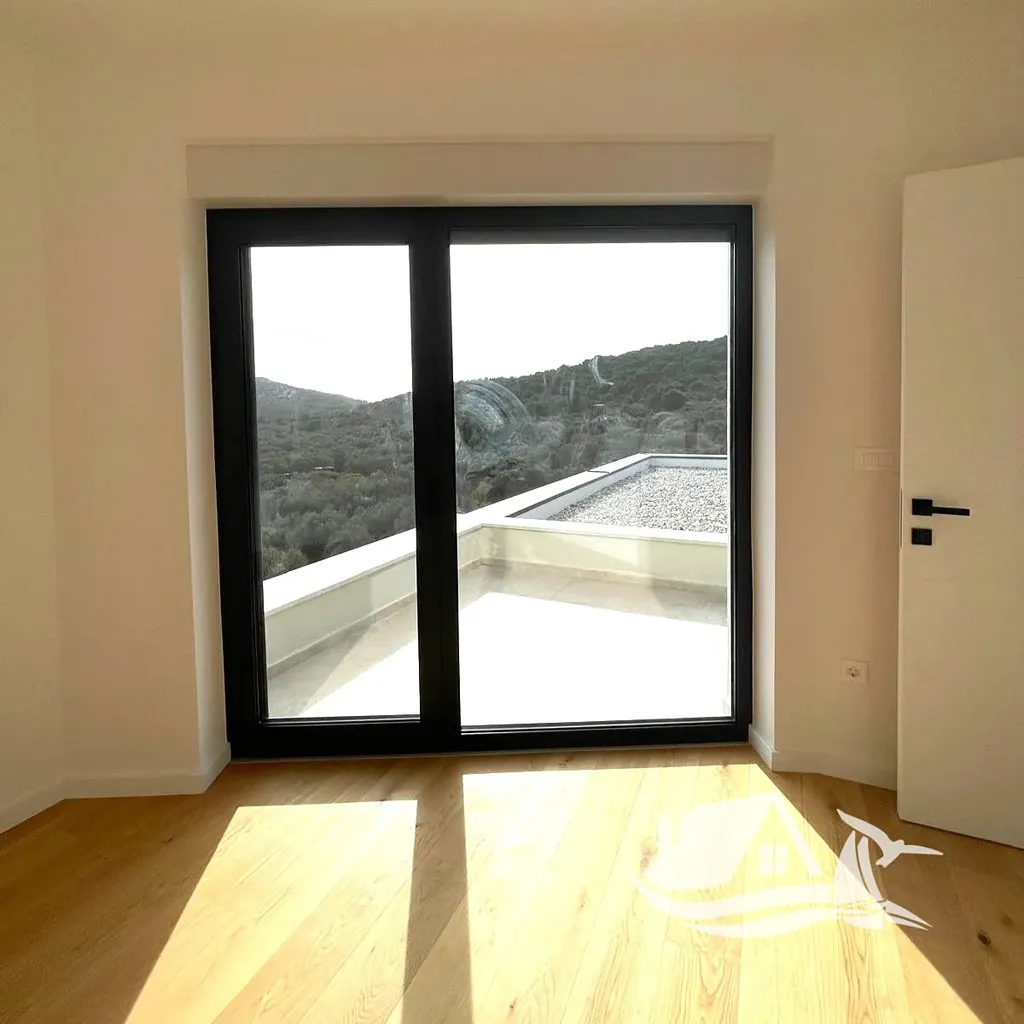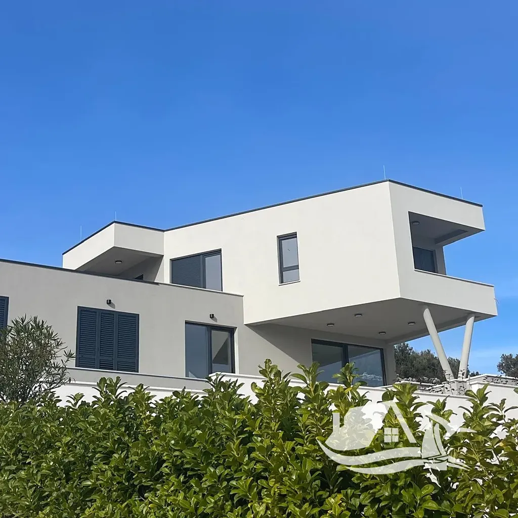 Na vyvýšeném místě pouhých 150 metrů od pláže nabízíme samostatně stojící luxusní vilu s bazénem a garáží, která poskytuje dechberoucí výhled na moře a okolní krajinu. Tato moderní novostavba je ideální pro celoroční bydlení i jako reprezentativní rekreační sídlo s výrazným investičním potenciálem.