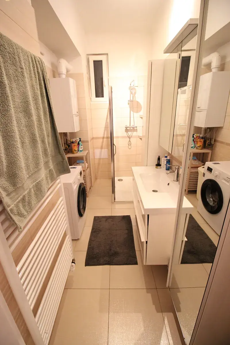 Byt má tři neprůchozí pokoje, samostatnou kuchyň s komorou, samostatné WC s umyvadlem, koupelnu se sprchovým koutem, umyvadlem a místem pro pračku, vstupní chodbu a dva balkóny ( jeden je na západ a druhý na východ ). Kuchyňská linka je plně vybavena (lednice, myčka, trouba, mikrovlnka, varná deska, digestoř).