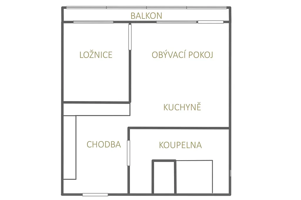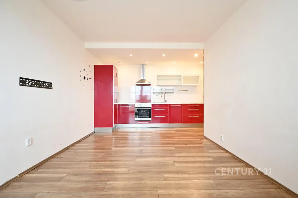 Byt se nachází v devátém nadzemním podlaží panelového domu. Disponuje vstupní chodbou, odkud se vchází do prostorné koupelny se sprchovým koutem, WC a umyvadlem. Z chodby se dostaneme dále do obývacího pokoje s kuchyňskou linkou. Ta je vybavena vestavěnou lednicí, myčkou, troubou, sklokeramickou deskou a digestoří. Je odsud vstup na lodžii. Vedle této místnosti se nachází samostatný pokoj. Na chodbě jsou vestavěné skříně.