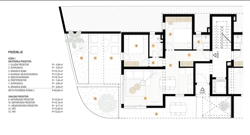 Užitná plocha 82,26 m², krytá i nekrytá terasa a vlastní zahrada