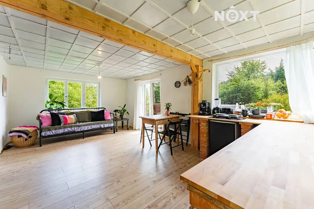 V chatě se nachází obývací pokoj s krbovými kamny, které dodají teplo i velmi příjemnou atmosféru během chladnějších dnů. V místnosti také najdete kuchyň, ze které se dostanete do koupelny, se sprchovým koutem a toaletou a také do malé ložnice. Velkým bonusem je prostorná terasa. Perfektní místo pro letní grilování, snídani na čerstvém vzduchu nebo večerní posezení při západu slunce. Za chatou najdete ohniště, kde si můžete povykládat s přáteli a opéct si špekáček na ohni. A pokud půjdete dál, dojdete přímo do lesa.
