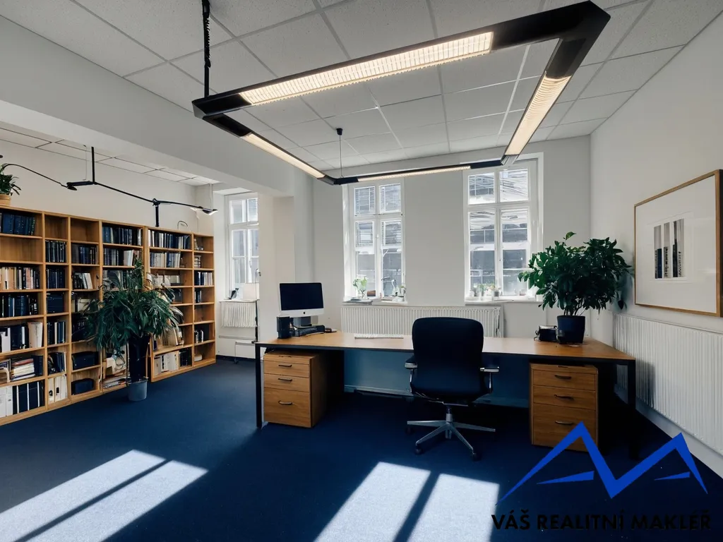 Kanceláře mají plastová okna se žaluziemi, kancelářské koberce, nové rozvody radiátorů a samostatné podružné měření elektřiny. Vytápění je řešeno plynovým kotlem a jsou nově vymalované.