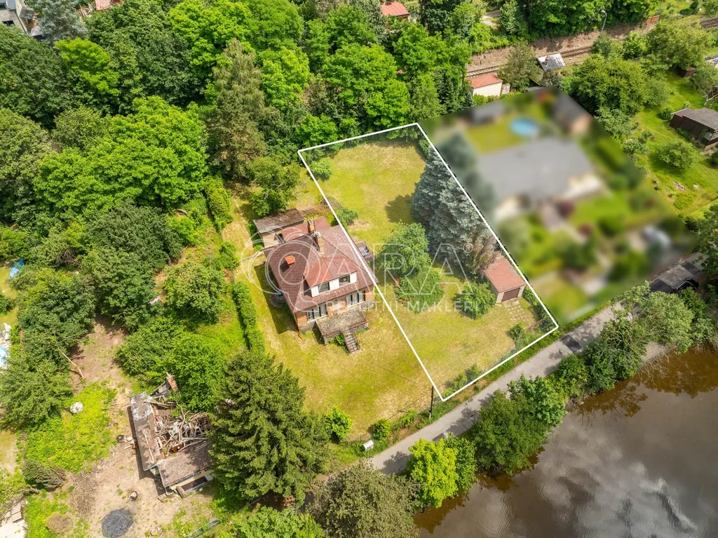 Zmiňovaný pozemek o výměře cca 838 m2 právě vzniká oddělením od pozemku prvorepublikového domu. Pozemek je v mírném svahu, nachází se na něm stavba garáže. Přestože se parcela nachází u řeky, navíc s nádherným výhledem, nenachází se v povodňové zóně. Díky vodnímu dílu Vrané nad Vltavou zde nebyla velká voda ani v roce 2002.