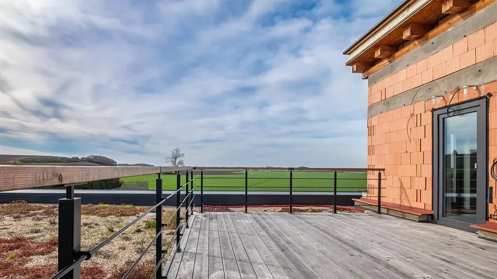 V 1.patře Vás hned zaujme prostorná hala se šikovně osazenou pracovnou. Dále zde máte dva prostorné dětské pokoje se vstupem na jednu ze dvou teras, koupelnu se sprchovým koutem a vstupem na druhou terasu, samostatné WC a v neposlední řadě ložnici majitelů s příjemně velikou šatnou a také vstupem na druhou terasu. Z teras máte panoramatický výhled do kraje a opravdu skvělé tu budou zejména západy slunce, protože na západ od tohoto domu již žádné stavby nejsou a v územním plánu ani nejsou plánovány. Součástí domu je také technická místnost pro skladování zahradní techniky, kol nebo motocyklu.