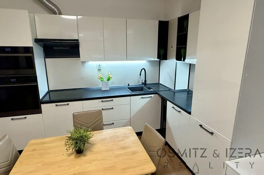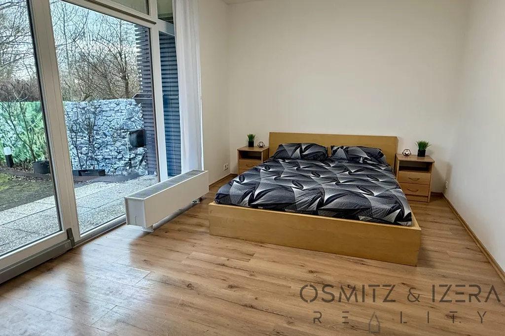 Nabízíme k pronájmu hezký byt 2+kk o celkové rozloze 52 m2 v klidné části Prahy 4 - Kamýk. Byt je v přízemí komplexu moderního bytového domu s uzavřeným vnitroblokem pouze pro rezidenty. Byt je částečně zařízený. Zahrada o přibližné ploše 40 m2 je orientovaná na jih a je přístupná přes francouzská okna z ložnice. Kuchyňská linka je vybavena vestavěnými spotřebiči (myčka, varná deska, elektrická trouba, digestoř a volně stojící kombinovaná lednice). Byt má velkoformátová francouzská dřevěná eurookna a bezpečnostní dveře. Ve velké koupelně je vana, WC a prostor na pračku a sušičku. V předsíní je vestavěná skříň. V bytě jsou plovoucí podlahy a dlažba.