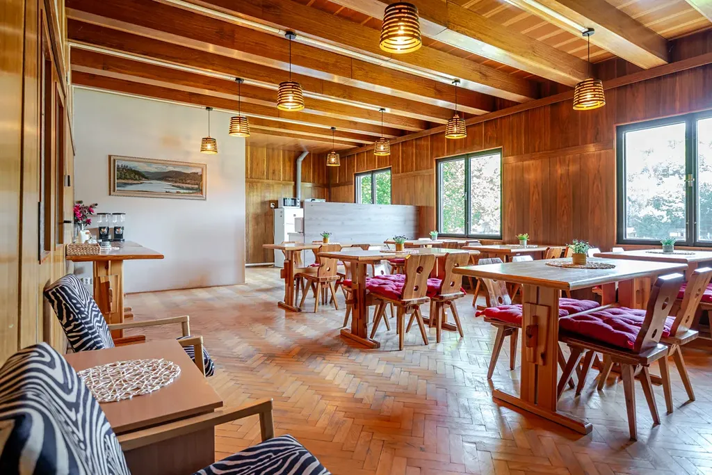 Jedná se o podsklepenou čtyřpodlažní zděnou budovu, která disponuje recepcí, zázemím restaurace včetně plně vybavené moderní kuchyně v nerezu se spotřebiči, jídelnou s obslužným barem, společenskou místností, vnitřním a venkovním posezením a ubytovací kapacitou 30 lůžek v deseti samostatných pokojích, z nichž některé mají terasu a samostatnou či sdílenou koupelnu.