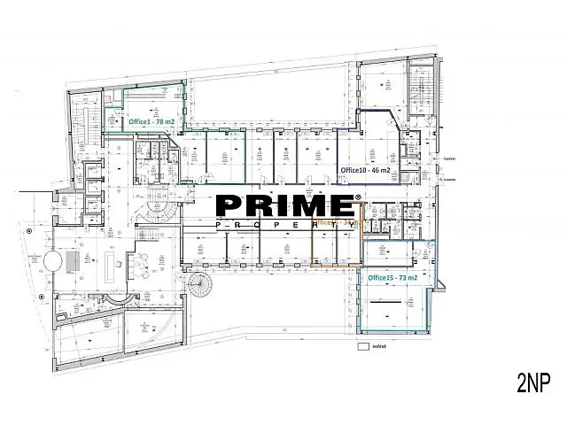 Specifikace prostor: stávající layout: 1 kancelář částečně rozdělená příčkou; klimatizace, snížené podhledy, otevíratelná okna, optická vlákna, přístup na magnetické karty. Společné prostory na patře disponují kuchyňkou, sprchou, toaletami a tichými terasami ve vnitrobloku k vybraným jednotkám. V budově je centrální recepce, ostraha a 24 hodinová bezpečnostní služba.