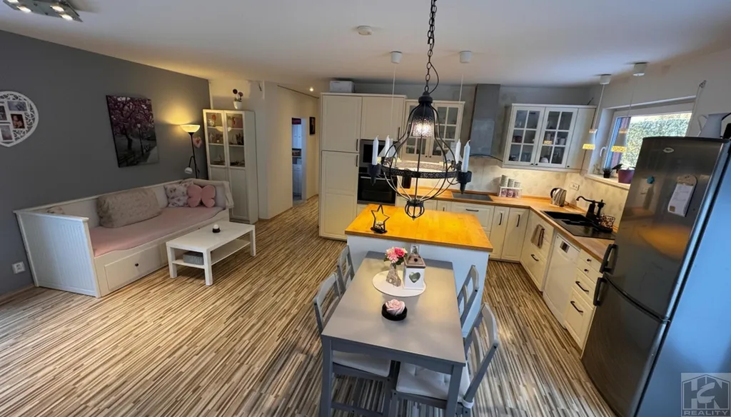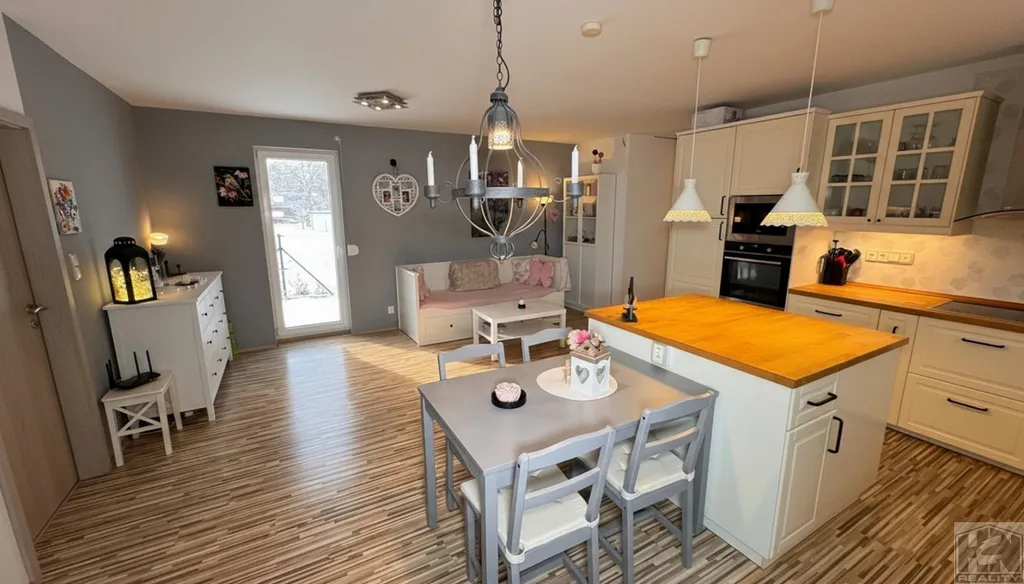 Interiér je navržen s důrazem na praktičnost i pohodlí. Dominantou domu je světlý a prostorný obývací pokoj s kuchyňským koutem, který tvoří přirozené centrum domácnosti. Dále zde najdete ložnici, dva samostatné pokoje, prostornou koupelnu s vanou i sprchovým koutem, samostatné WC, komoru a technickou místnost s úklidovým zázemím.