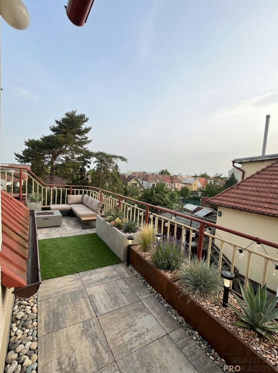 Dispozice domu 5 + 1 o celkové podlažní ploše 124 m² nabízí dostatek prostoru pro pohodlné bydlení celé rodiny. Součástí nemovitosti je mimořádně prostorná terasa 40 m² ideální pro letní posezení a relaxaci, balkon 20 m² s výhledem do okolí a dvě garáže.