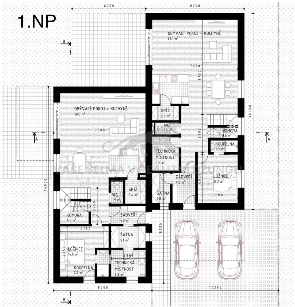 Na obrázcích označeno jako domy A1, A2, B1, B2