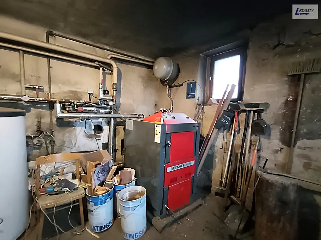 V suterénu domu se nachází kotelna s novým kotlem na tuhá paliva Atmos 50 a novými rozvody tepla, 2 x sklad, dále 4 samostatné obytné místnosti, ke kterým náleží 2 x sociální zařízení.