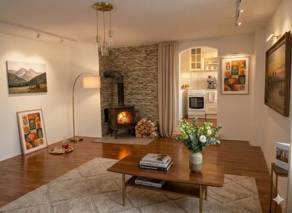 Byt se nachází v 1. patře cihlového domu a nabízí útulný obytný prostor s atmosférickým krbem, který vytváří pravou horskou náladu. Hlavní zdroj vytápění je řešen elektrickými přímotopy.