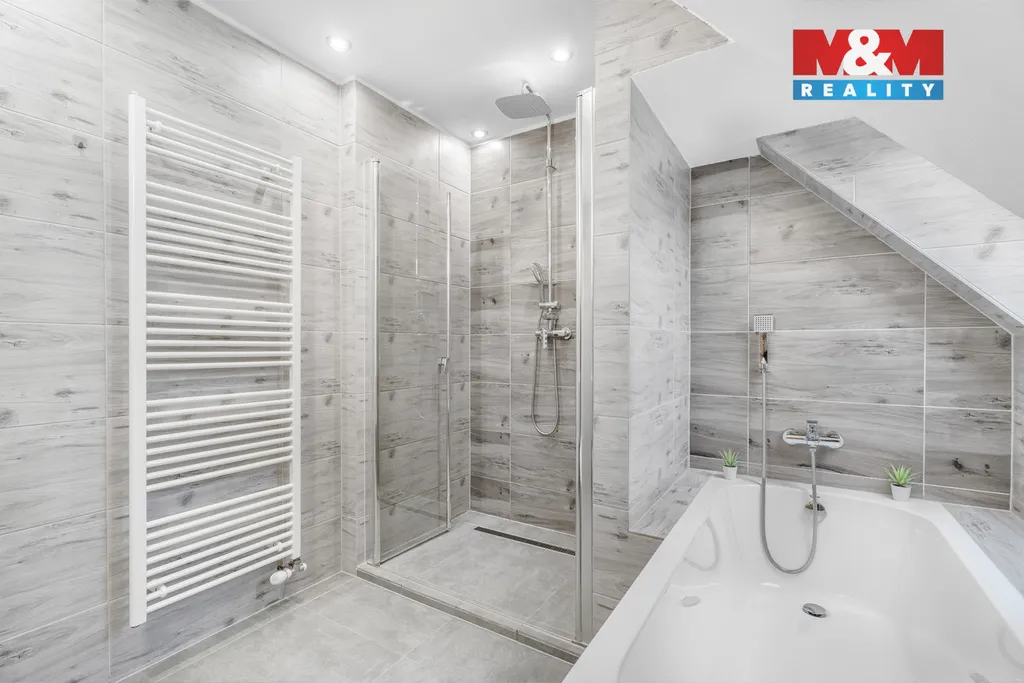 Centrem setkávání je kuchyň spojená s jídelnou a obývacím pokojem. Vaše oči pohladí nová linka, plně vybavená vestavnými spotřebiči. Navazující zimní zahrada rozšiřuje užitnou plochu domu. Potěší vás úložné prostory v zádveří, spodní koupelně i hale. Z ní jsou přístupné dva velké pokoje. V podkroví se pak nachází ložnice s lodžií a šatnou, dětský pokoj, druhá koupelna a toaleta. V suterénu domu jsou prostory, které nyní slouží jako welness, dílna, techn.místnost.