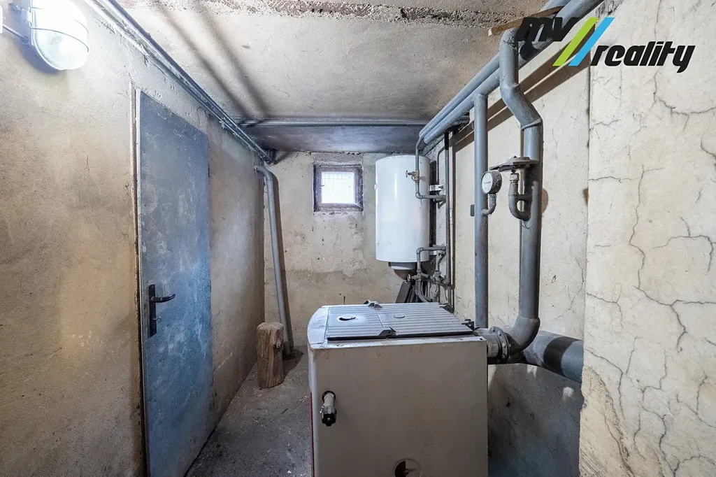 Dům je vytápěn kotlem na tuhá paliva s rozvody do radiátorů. Ohřev teplé vody je řešen elektrickým bojlerem, voda je z veřejného řadu a odpady jsou svedeny do jímky. Přípojka plynu je na hranici pozemku a je možné se na ní připojit.