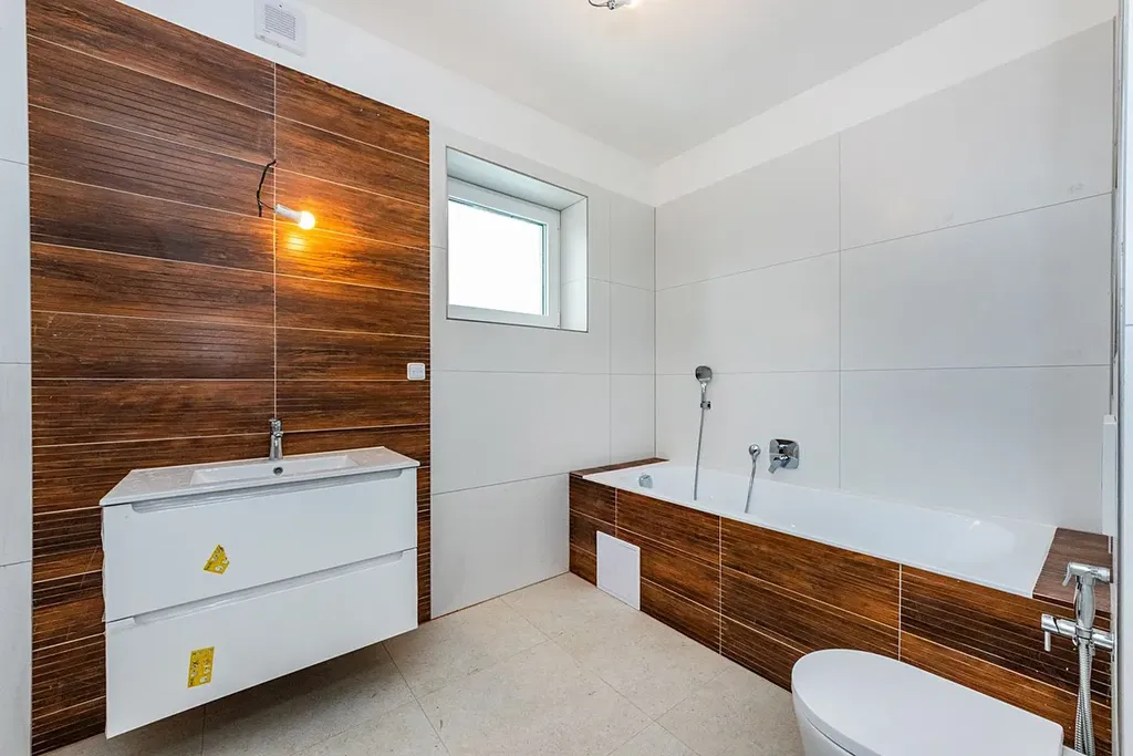 Nová moderní vila dispozičně řešená jako 5+kk se dvěma koupelnami, garáží a kompletně realizovanou zahradou včetně venkovní terasy.