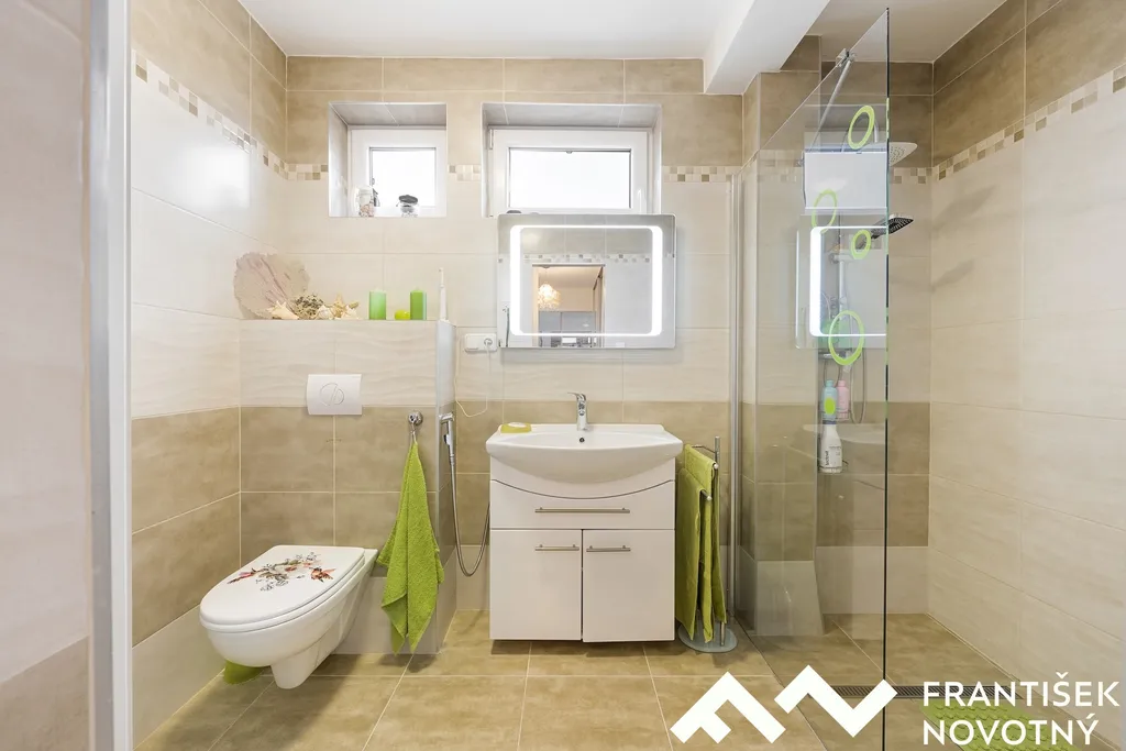 Dvě samostatné místnosti, lodžie s výhledem do zahrad a na Pálavu, velká půda vhodná pro další obytnou vestavbu, ateliér nebo domácí pracovnu.