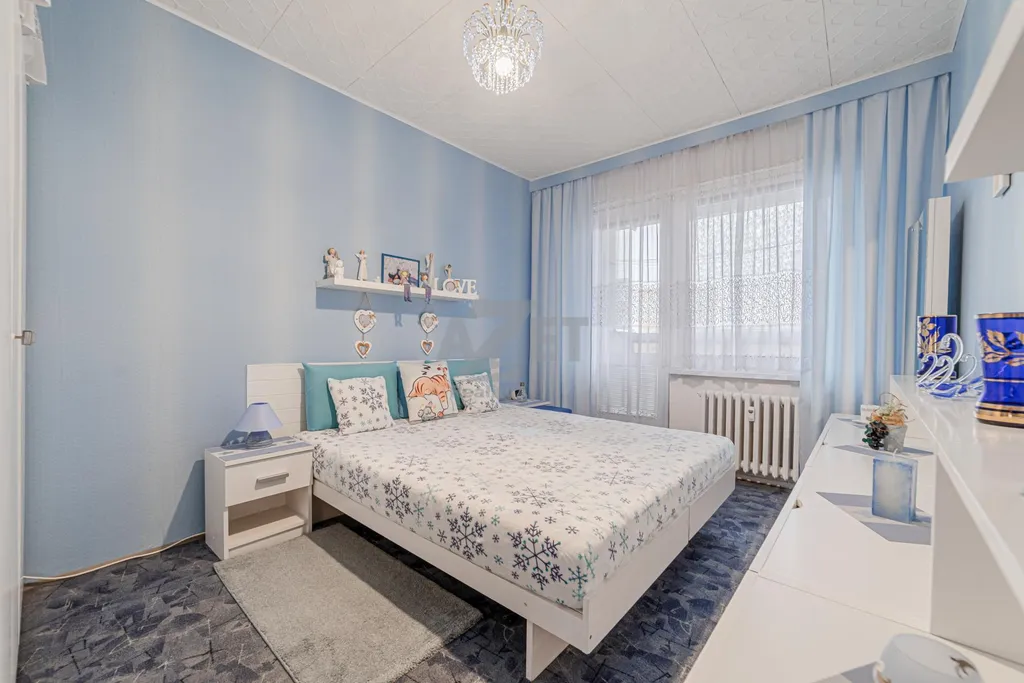 Naše společnost Vám exkluzivně nabízí k prodeji družstevní byt 3+1 po částečné rekonstrukci v 7.NP z osmi. Celková výměra prodávané nemovitosti včetně sklepa činí 73 m2. El. rozvody v mědi. Voda a odpady v plastu. Plastová okna se žaluziemi a parapety. Plovoucí podlahy/koberce kromě sanity se sníženými podhledy, kde je položená keramická dlažba. Nové interiérové dveře v průchodech bytu. Obývací pokoj s ložnicí je průchozí. Dětský pokoj neprůchozí. Koupelna se zapuštěnou vanou a vyhrazeným místem pro pračku. Kuchyňská linka se spíží a spotřebiči (el. trouba, plynový sporák, digestoř, dřez, mikrovlnná trouba, lednice s mrazničkou). Nespočet úložných prostorů. Výhled na 2 světové strany (sever vs jih). Přes zasklenou lodžii se Vám naskýtá jižní rozhled na CHKO Beskydy, respektive horu Javorový vrch. Připojení k internetu a TV. K dispozici sklepní kóje a společná kolárna. Veškerý nábytek a spotřebiče na fotografiích jsou součástí nabídky. Pro zmínění např. zabudovaná sklápěcí postel do zdi se skříněmi v dětském pokoji (50.000, - Kč), lednice s mrazničkou (17.000, - Kč), obývací stěna s domácím kinem + repro bedny, křišťálové lustry a mnoho dalšího. I z tohoto důvodu může být koupě této nemovitosti také vhodnou volbou k pronájmu. Velkou výhodou této lokality je dostupnost městské hromadné dopravy (2 min. pěší chůzí) a nespočet parkovacích míst. Nabízená nemovitost je k dispozici od 1. července 2026, popř. po individuální domluvě i o něco dříve.