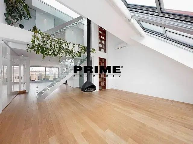 Nedávno postavený, exkluzivní, klimatizovaný, 3 ložnicový, NEZAŘÍZENÝ mezonetový byt se 2 koupelnami k pronájmu, 4+kk, 260m2, se 3 terasami (celkem 194m2), situovaný v 5. a 6. patře kompletně zrekonstruovaného bytového domu s výtahem. Budova se nachází v rezidenční lokalitě na Vinohradech, v těsné blízkosti Náměstí Jiřího z Poděbrad, 2 minuty chůze ke stanici metra a zastávce tramvaje (4 minuty MHD na Václavské náměstí), 7 minut chůze do Riegrových sadů, 10 minut chůze k obchodnímu centru Flora s multiplex kinem, blízko obchodů, supermarketu, kaváren a restaurací.