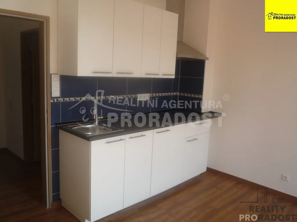 Obytná plocha bytu činí 24m². Dispozice je prakticky řešena – obytný prostor je rozdělen na kuchyňský kout a obývací část. Kuchyňský kout je vybaven spotřebiči (lednice s mrazicím boxem, varná dvojplotýnka).