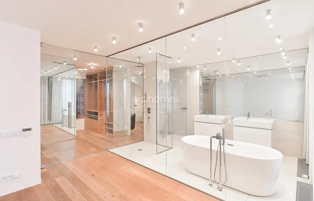 K dalšímu vybavení patří : klimatizace, centrální vypínač, alarm, bezpečnostní dveře, videotelefon, dřevěné podlahy, pračka, sušička, satelitní a internetové připojení. K dispozici sklep. Podlahová plocha 273 m2. Terasa 194 m2. Celková plocha 467 m2.