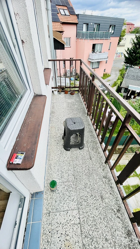 Z obývacího pokoje je výstup na balkon s výhledem do klidné části zahrady, orientované jihovýchodním směrem.