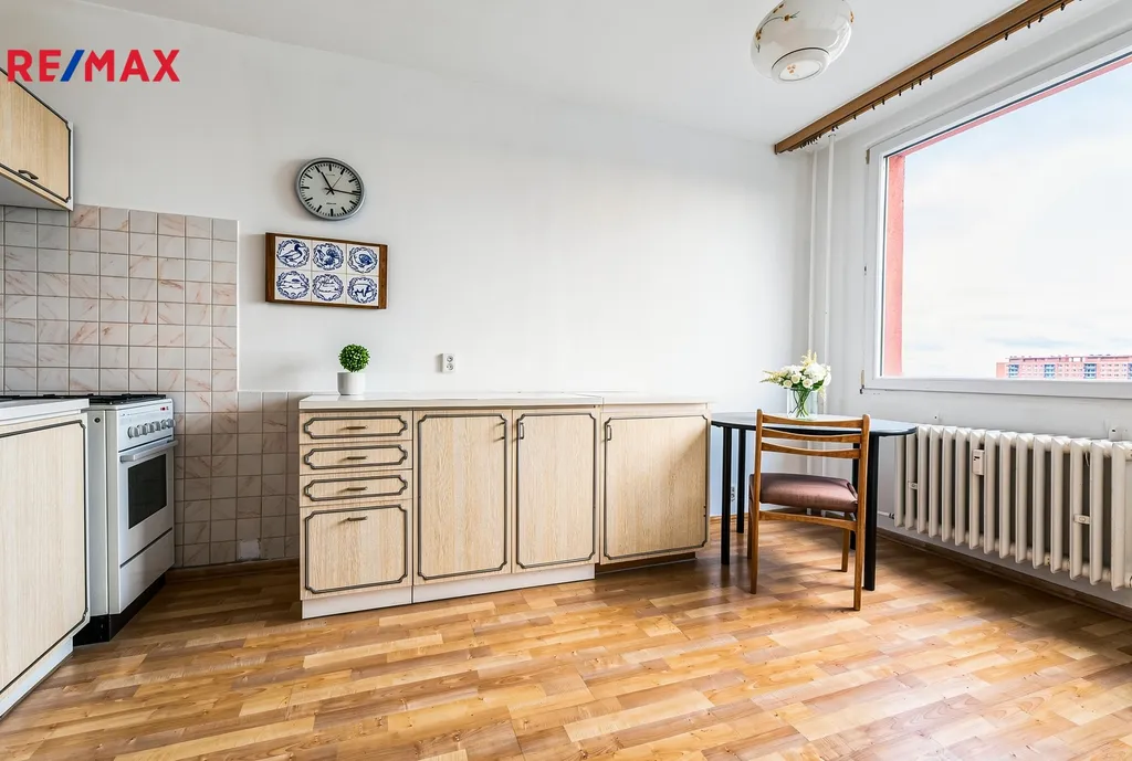 Byt se nachází v 10. nadzemním podlaží panelového domu a díky velkým oknům je velmi světlý. Díky svému umístění nabízí nádherné výhledy na Prahu a okolí.