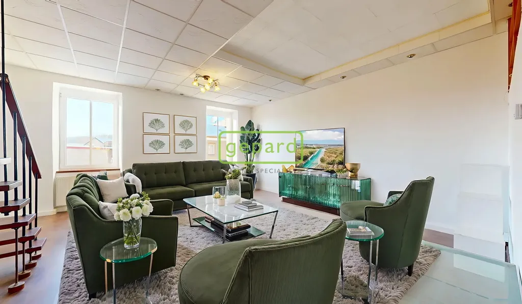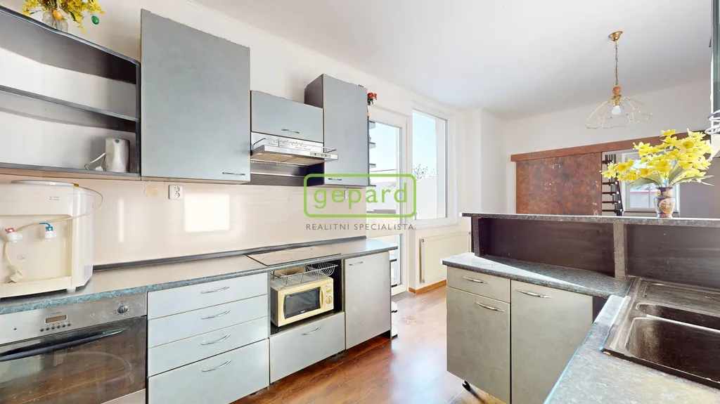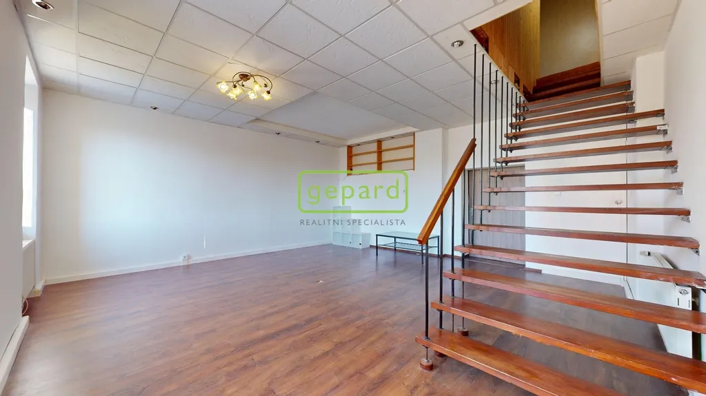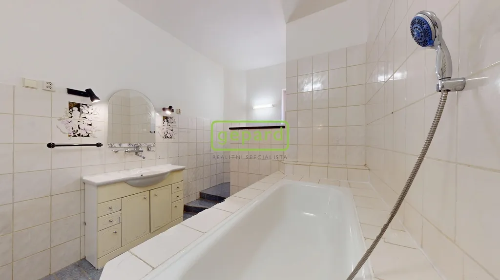K prodeji "královská" bytová jednotka o velikosti 79,3 m2 a ateliér určený k bydlení o velikosti 25,5 m2 připojený vnitřním schodištěm + úvaha do budoucna o odkoupení půdního prostoru (cca 48 m2) a rozšíření či úplné oddělení jednotek. Benefitem je velkorysý balkon o velikosti 5,3 m2, komora v mezipatře o velikosti 1,1 m2 a sklep cca 15 m2. Bytová jednotka se nachází ve třetím nadzemním podlaží z celkových čtyř bez výtahu v domě se sedmi jednotkami (včetně zmíněného ateliéru). Celková velikost včetně příslušenství 126 m2.