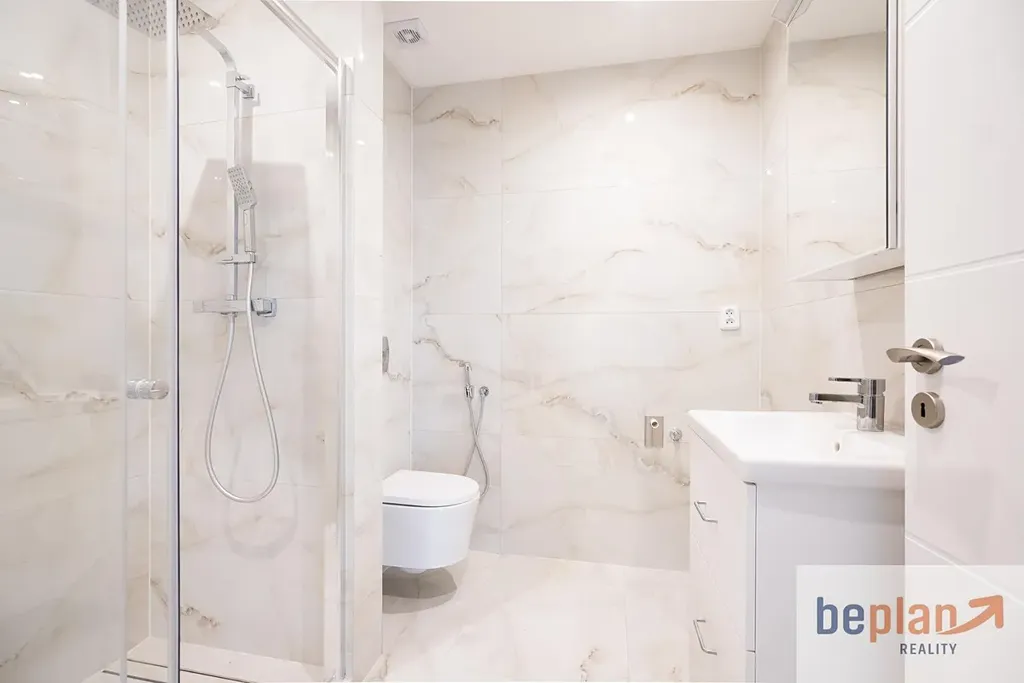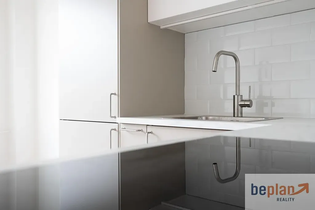 Po otevření dveří vás byt přivítá příjemnou atmosférou čistoty a moderního zpracování. Pokud se vydáte po levé straně, otevře se před vámi vkusně řešený kuchyňský prostor s moderní kuchyňskou linkou značky IKEA, která nabízí dostatek úložného místa i komfort každodenního vaření. Součástí jsou vestavné spotřebiče lednice s mrazákem, myčka, trouba, varná deska i digestoř, vše elegantně sladěné do kompaktního a funkčního celku.
