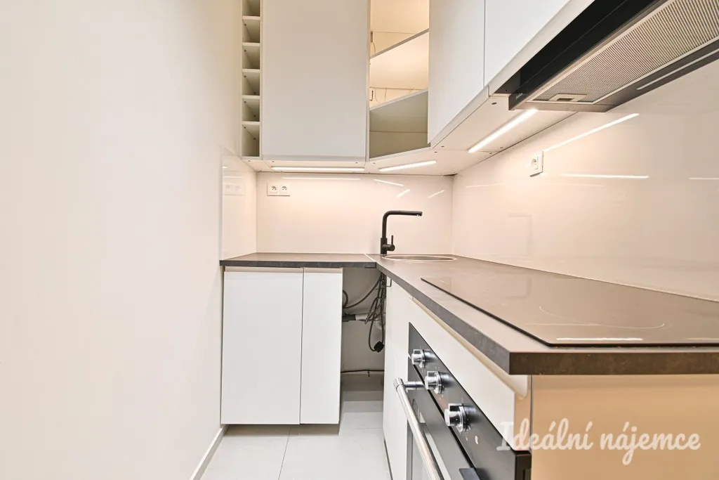 Byt se nabízí vybavený dle fotografií. Dispozičně je rozdělen na obytný pokoj, samostatnou kuchyň, koupelnu se sprchovým koutem a toaletou a předsíň. Kuchyňská linka je vybavena vestavnou troubou, varnou deskou a digestoří.