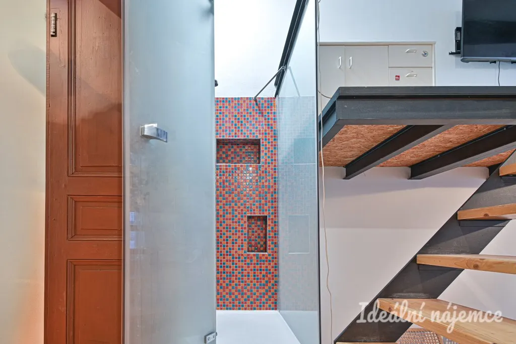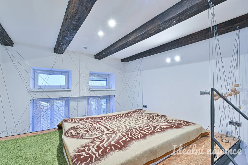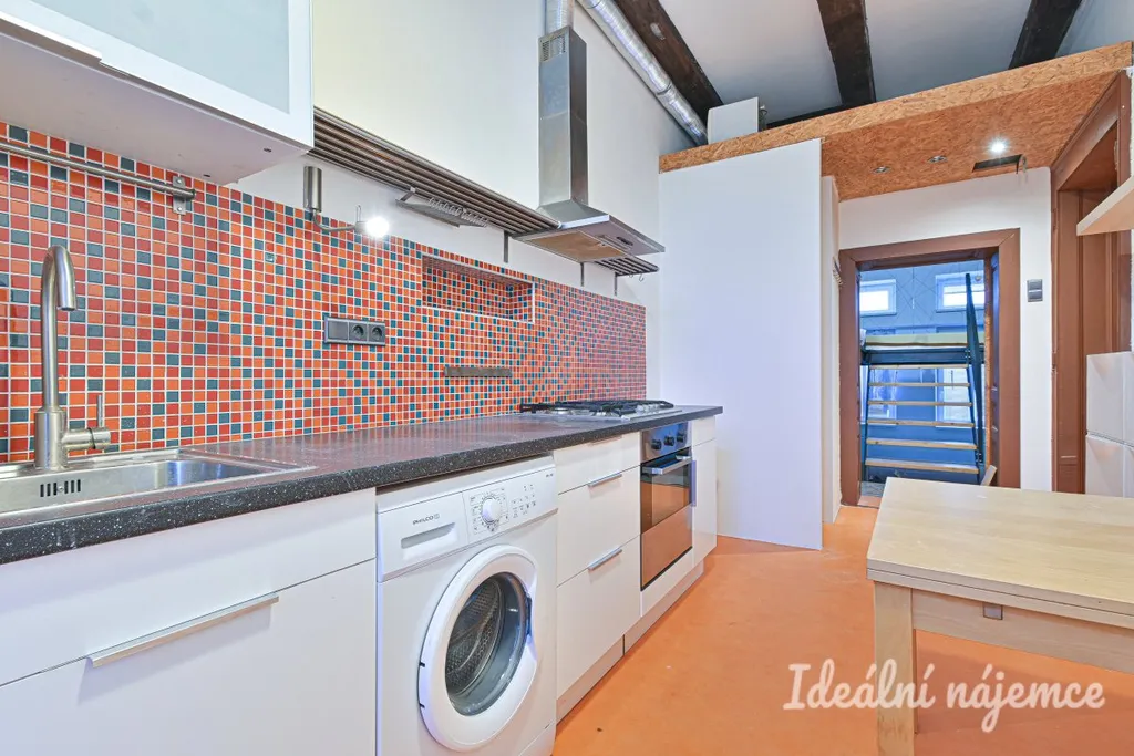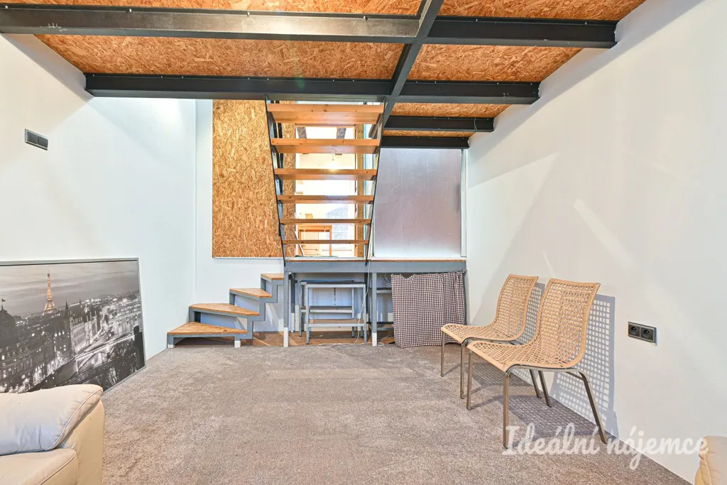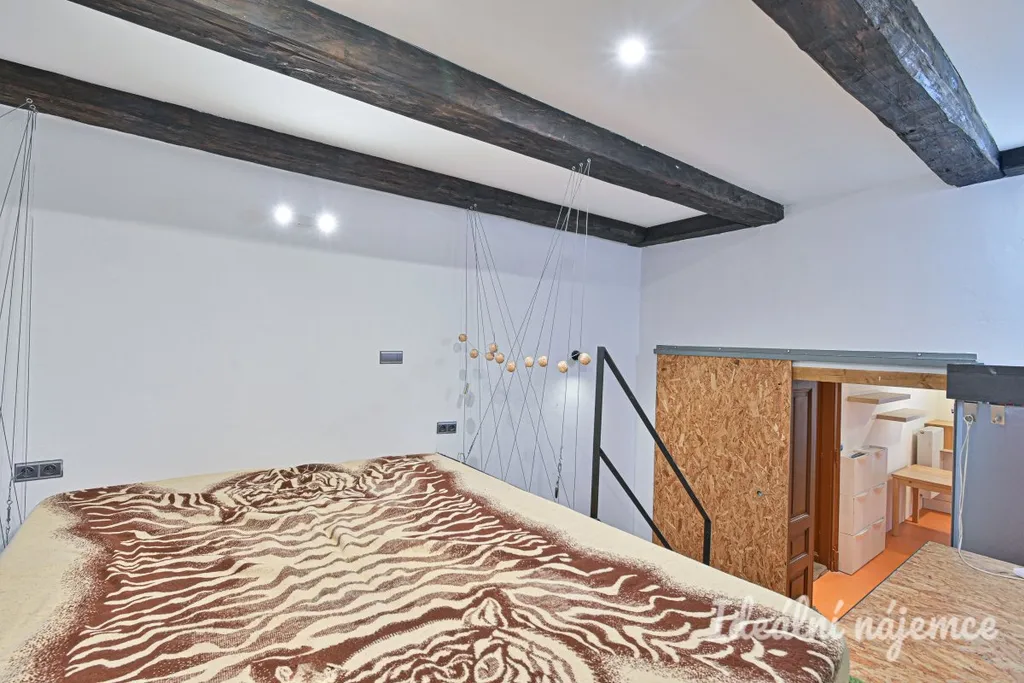Součástí bytu je obytný pokoj s patrem na spaní, samostatná kuchyně a koupelna se sprchovým koutem a toaletou. Kuchyň je vybavena kuchyňskou linkou se spotřebiči. Byt se nabízí vybavený dle fotografií.