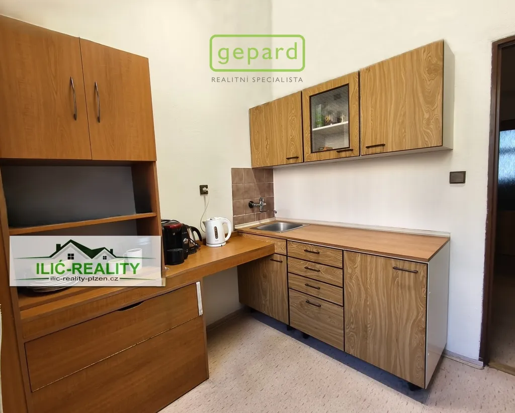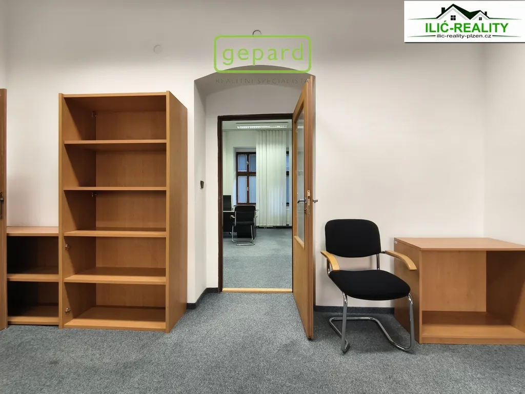 Nabízíme k pronájmu dvě zařízené kanceláře o velikosti 18 m² a 27 m² v prvním patře administrativní budovy na Roudné v Plzni.