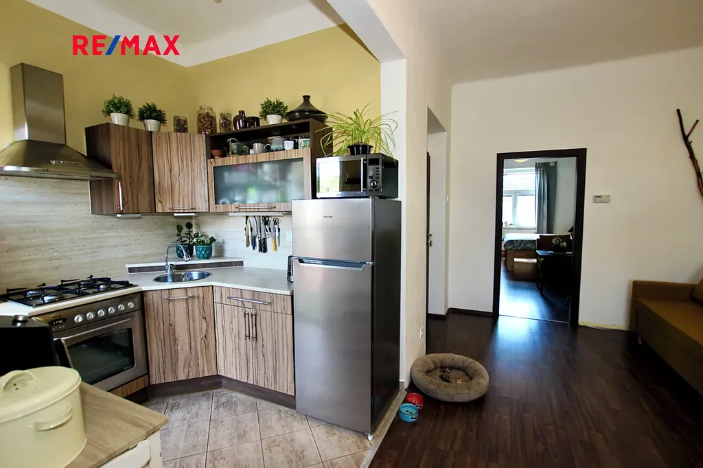 Dispozice bytu zahrnuje prostorný obývací prostor s kuchyňským koutem, prostornou ložnici a koupelnu se sprchovým koutem a toaletou. Kuchyňská linka je vybavena plynovou varnou deskou a elektrickou troubou. Vstupní předsíň poskytuje funkční úložné prostory díky vestavěné skříni. Součástí bytu je také lodžie o výměře 3,7 m², orientovaná do tichého vnitrobloku, kde si můžete vychutnat klidné chvíle. Byt prošel před několika lety kompletní rekonstrukcí. K pohodlí přispívá vlastní plynový kotel, jenž zajišťuje vytápění a ohřev vody. K bytu náleží sklep, což zajišťuje další úložné možnosti.